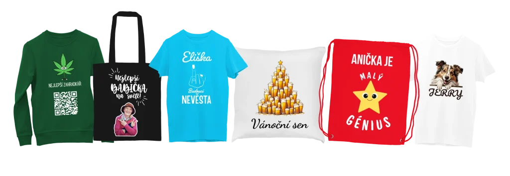 Žádné minimum kusů, žádné složitosti. Trička, mikiny, batohy a polštáře na pár kliknutí.